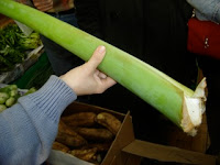 We saw taro in all shapes and sizes on our tour, from small, squat, hairy ones to these larger ones, which were sliced in two to reveal white flesh shot through with brown squiggles. These roots are cooked and used to make many varieties of Vietnamese dessert, as well as yum cha items such as taro cake. For sale separately are the amazingly long taro stems, shaped like elephant's tusks. These are sliced and used in Vietnamese soups.